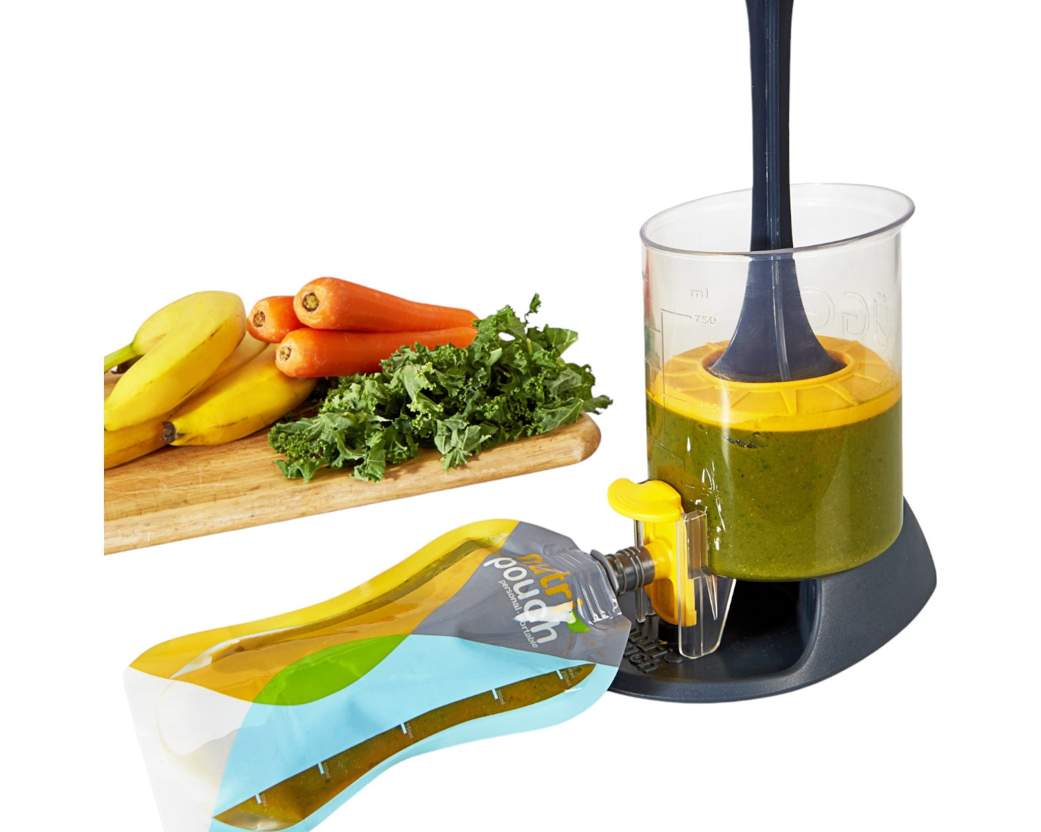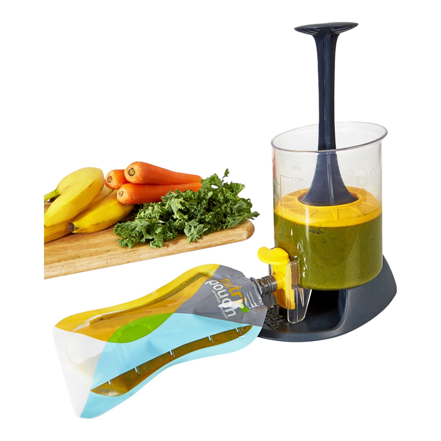 Push down the plunger to fill your Nutripouches up. Then refrigerate, freeze or take with you.