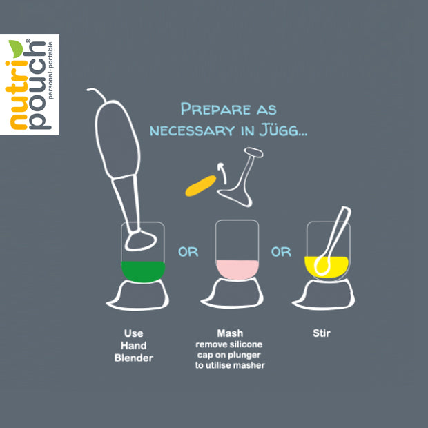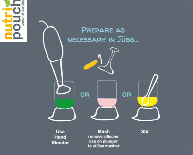 Remove the yellow nozzle and attach your reusable 250ml Nutripouch food pouch to the Jugg.